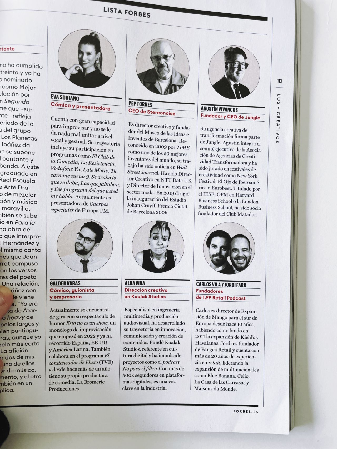 En 2025, su trayectoria ha sido reconocida a distintos niveles, destacando su inclusión en la prestigiosa lista de Forbes como una de las 100 personas más creativas del mundo de los negocios, un hito que consolida el impacto de su enfoque multidisciplinar, ético y cultural.